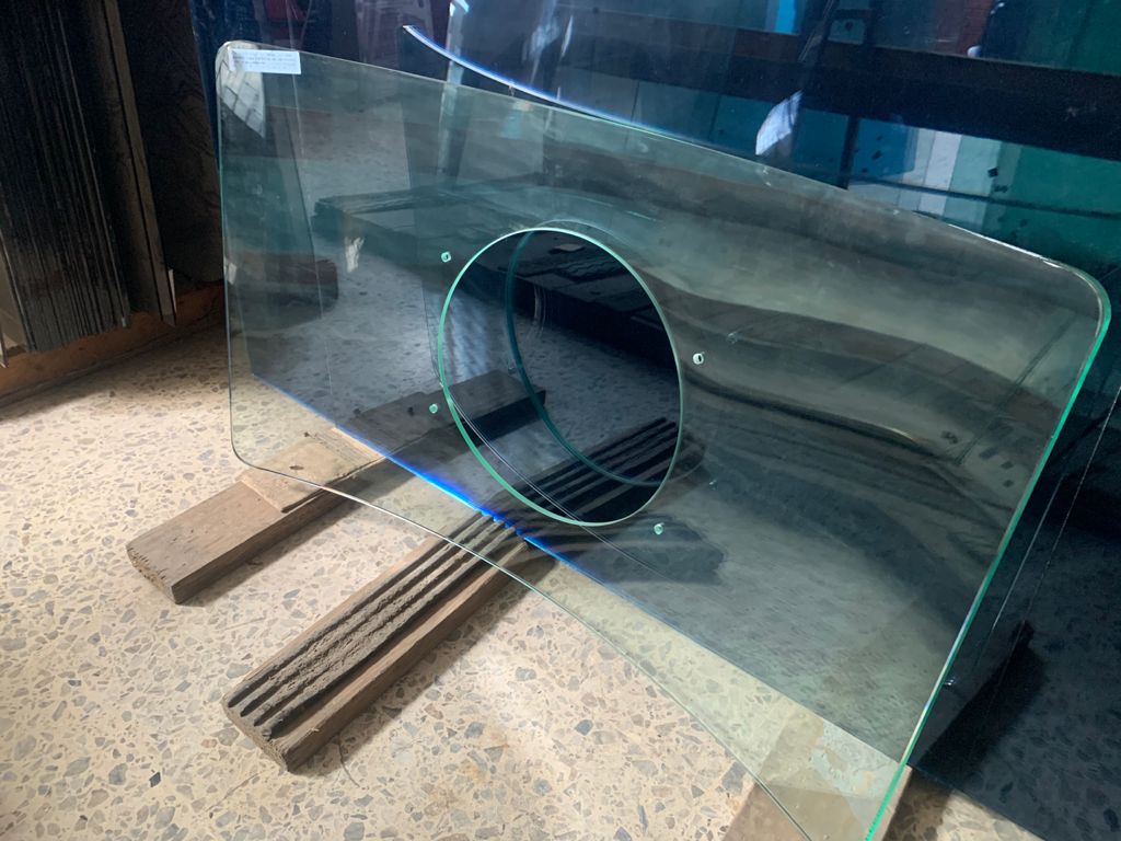 Tenemos la posibilidad de realizar vidrios curvos sin pinzatura con radios uniformes.